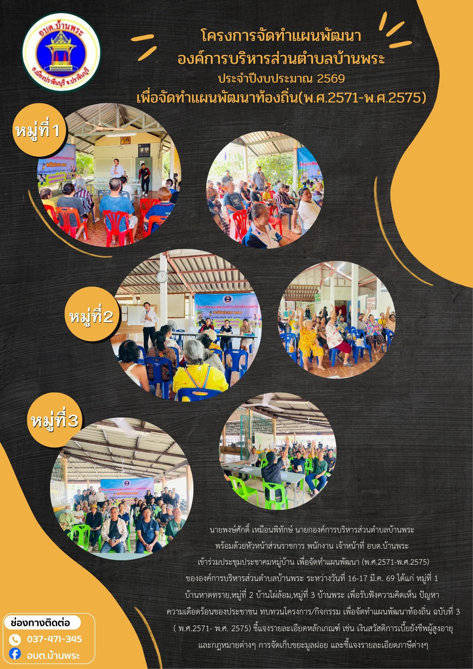 การประชุมประชาคมหมู่บ้าน เพื่อจัดทำแผนพัฒนา ท้องถิ่น (พ.ศ.2571-พ.ศ.2575) วันที่ 16-17 มี.ค 69 หมู่ที่ 1,หมู่ที่ 2 และหมู่ที่ 3