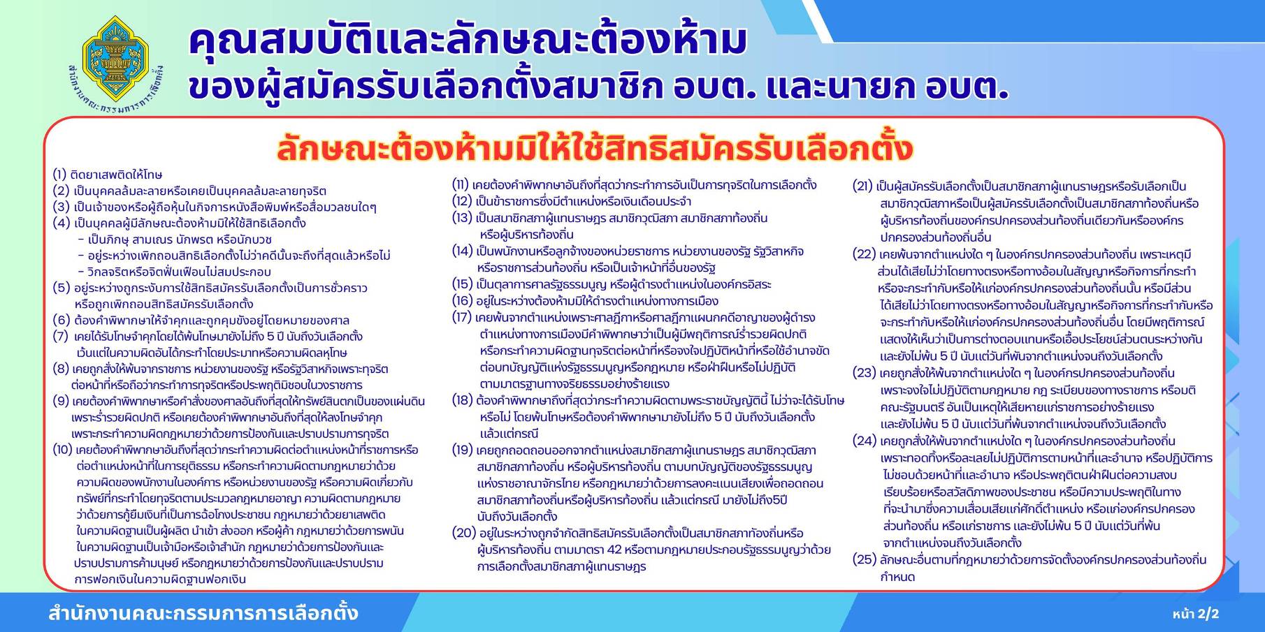 ศึกษาคุณสมบัติและลักษณะต้องห้ามของผู้สมัคร